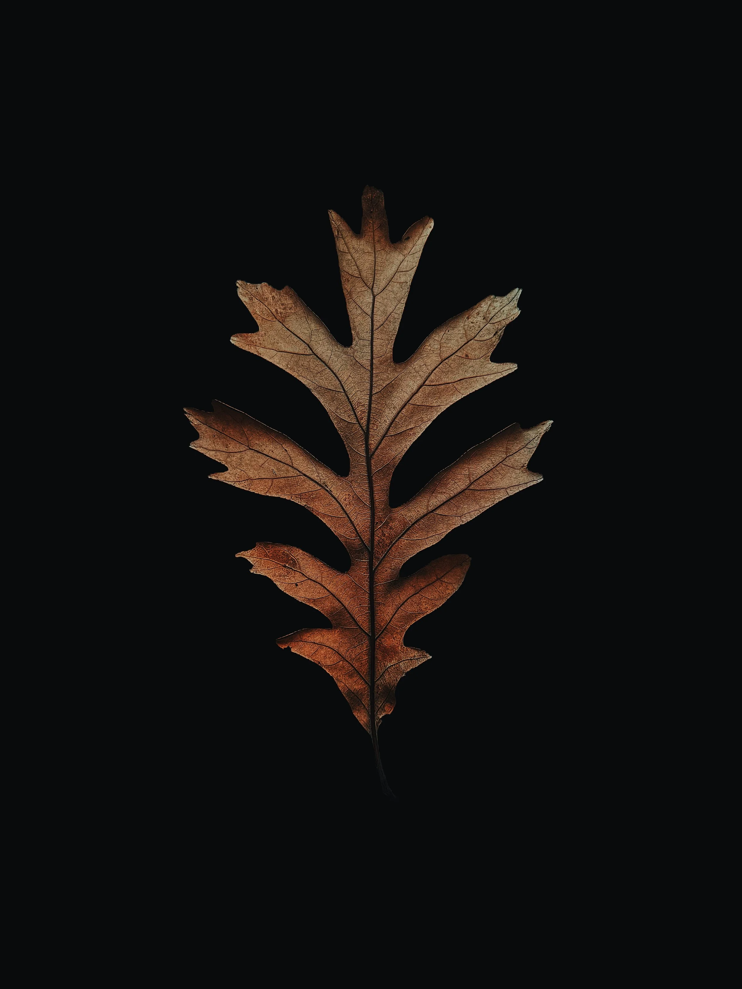 The fall is a season of crisp mornings, sweaters and long sleeves, hot drinks, and the approaching holidays. Trees mark the season every fall by displaying their colors and showing us the art of letting go. Legends of the Fallen highlights the unique aspect of both white and red oak leaves isolated on black to show how one leaf is as unique as you and I.